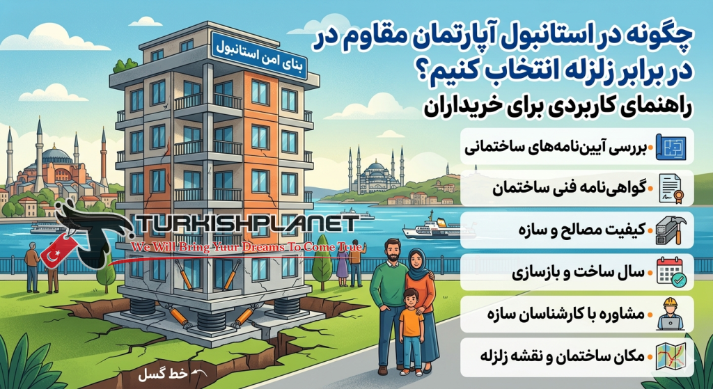 راهنمایی عملی برای بررسی موقعیت زمین، اسناد ساختمان، نشانههای ظاهری، کیفیت مشاعات و ضرورت نظر کارشناس پیش از خرید آپارتمان در استانبول.